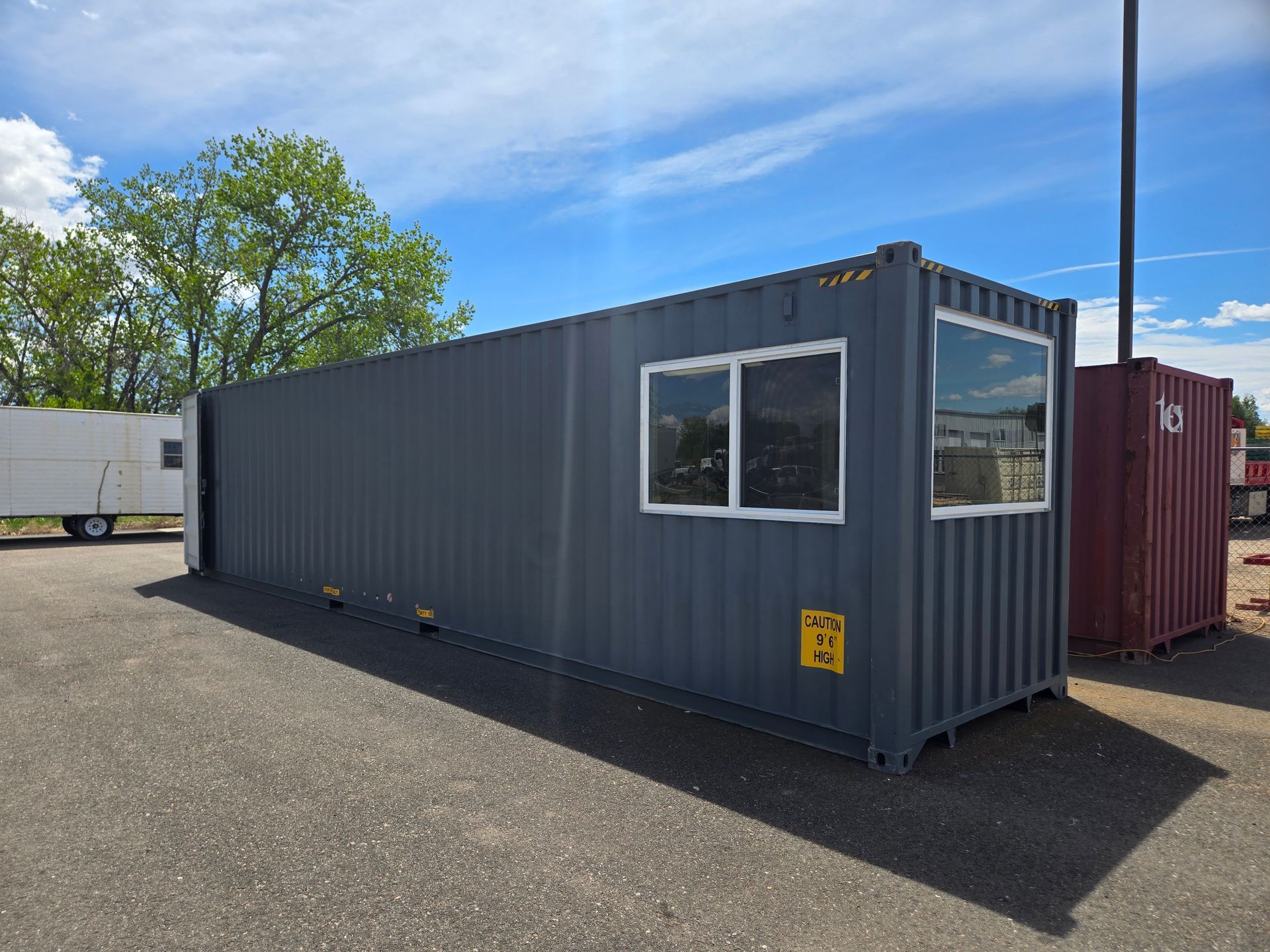 This 40ft overseas container includes a beautiful natural wood finish control room with bay windows, electrical room both insulated with heat and small uninsulated storage room for tools with access from the back. Custom fabrication that is easy to ship and place.