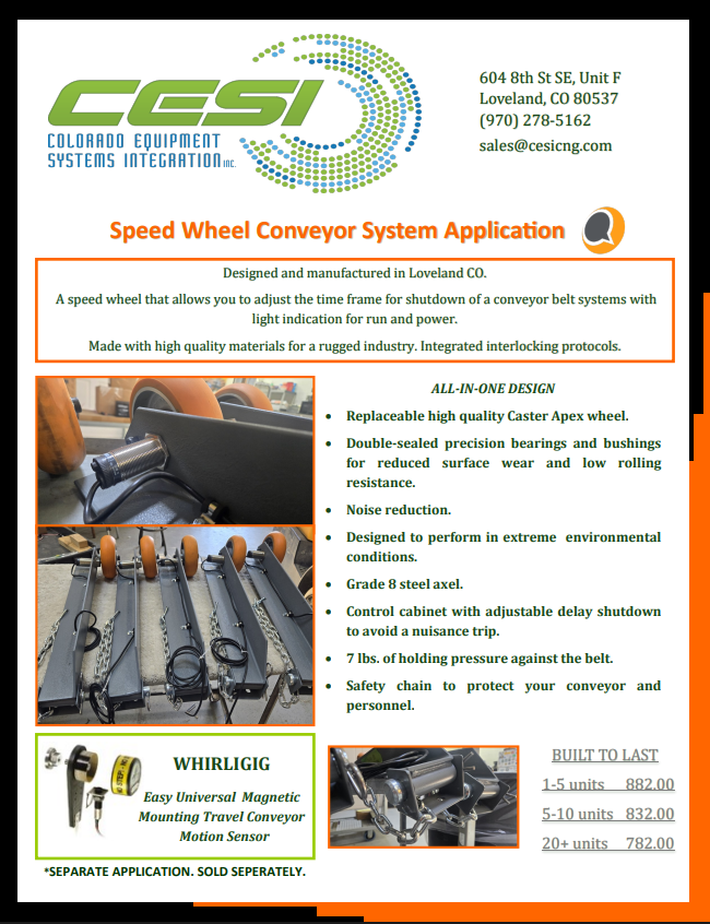 The speed wheel is a motion-tracking device for conveyor belts, designed to prevent nuisance trips caused by heavy loads or belt hopping. Unlike traditional sensors, it maintains constant contact with the belt, ensuring reliable rotation detection and avoiding unnecessary shutdowns.
